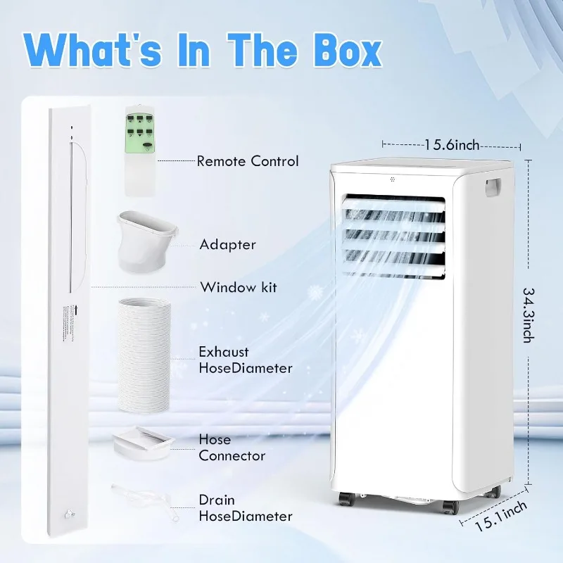 ã€Remote Control & Easy Mobility】Take control your comfort easily using the LED display and included remote. This portable air conditioner is highly movable, featuring four 360° heavy-duty wheels and side handles, allowing you to roll it to any room.