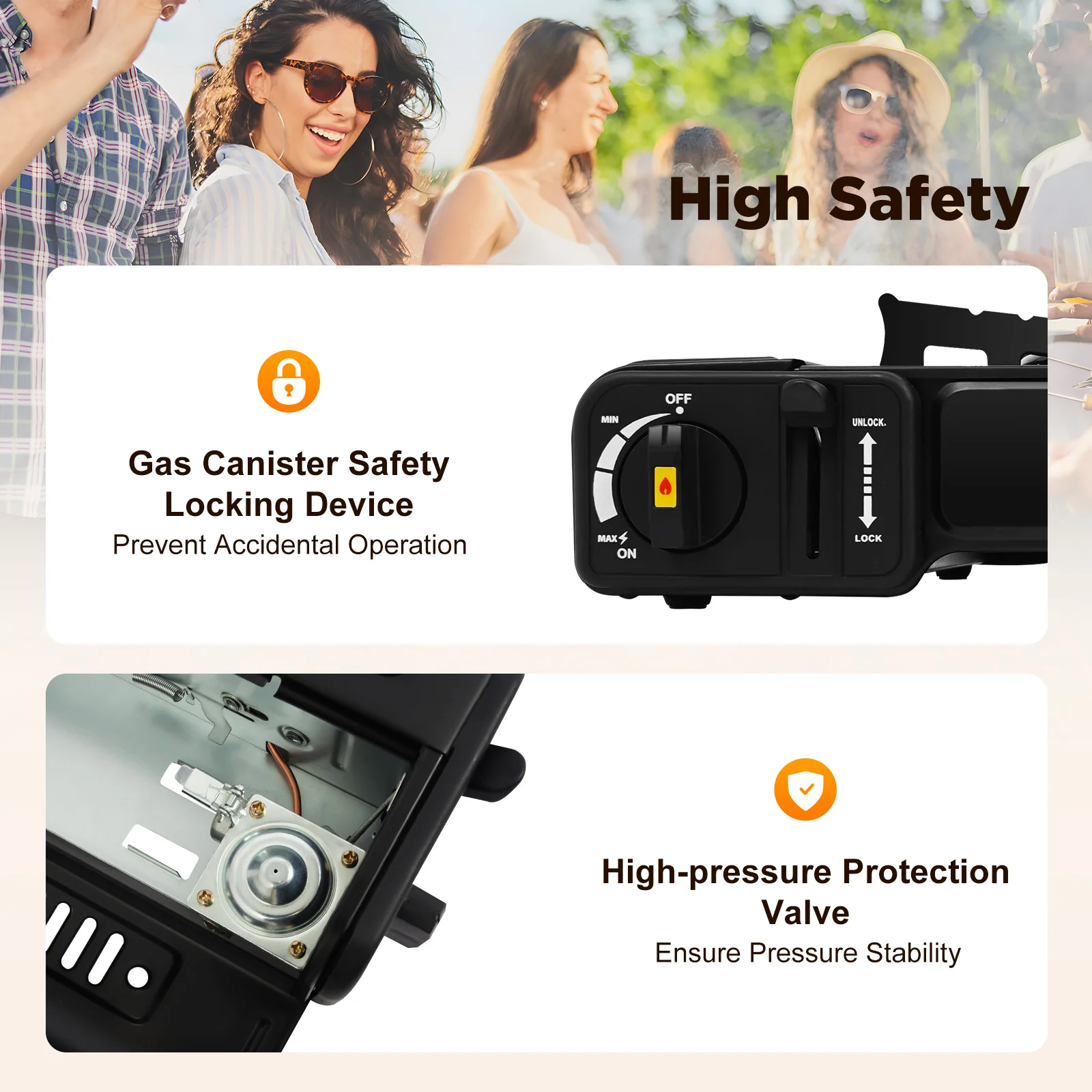 For camping enthusiasts, cooking in the wilderness is an indispensable activity. Imagine sitting on the turquoise grass, with the clear blue sky above your head, backed by a self-built tent, and cooking together with friends using a convenient gas stove, what a happy thing it is! Our portable camping stove with excellent performance, portable design, high safety, and durable materials can meet your outdoor cooking needs.
