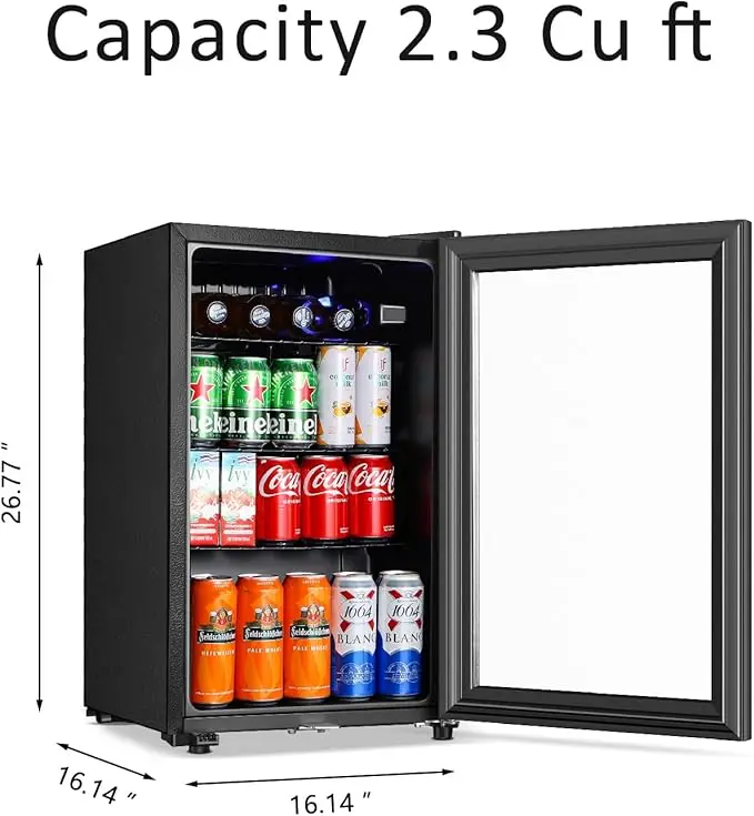 Small Size & Large Acity: 16.14″”D X 16.14″”W X 26.77″”H Compact Beverage Cooler With Large, Internal Storage Design Is Equipped With 3 Adjustable And Removable Shelves; The Small Refrigerator Has A Convenient Acity Of 70 Standard Size Drinks; Mini Refrigerator Can Be Used To Chill A Variety Of Canned Drinks Or Wine Chilled Without Taking Up Too Much Space At Your Home, Dorm, Bar Or Office