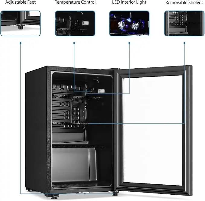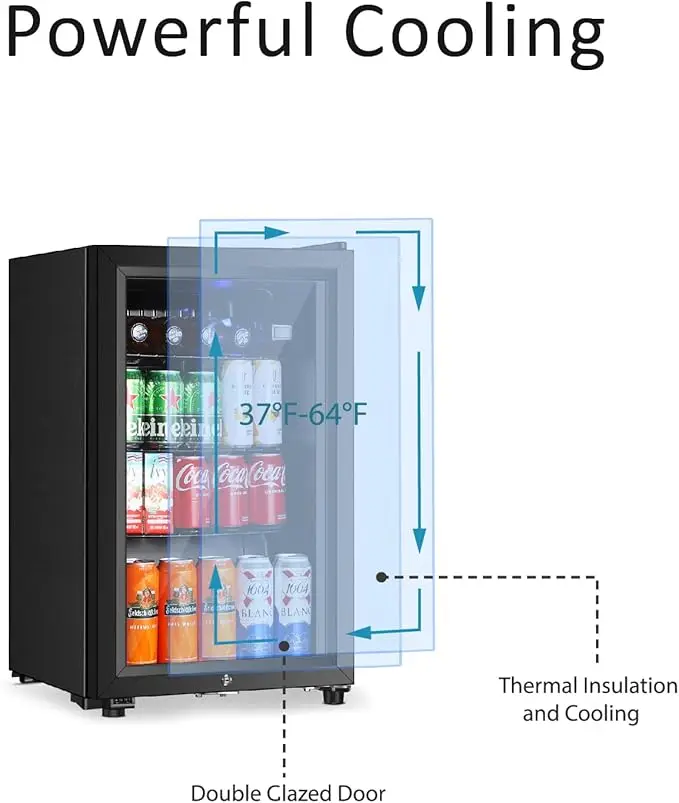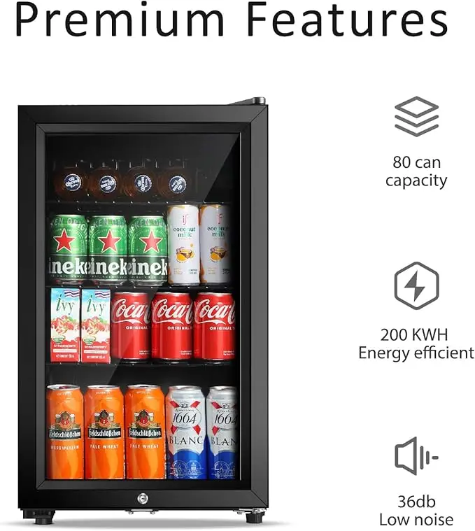Quiet Operation: The Beverage Cooler Is Built With A Low-Noise Compressor And Convection Fan To Even Distribution Of Cold Air; The Noise Level During Operation Is L Than 36 Db, Which Makes It Suitable For A Variety Of Places Such As Offices, Dormitories, Apartments, Kitchens, Etc