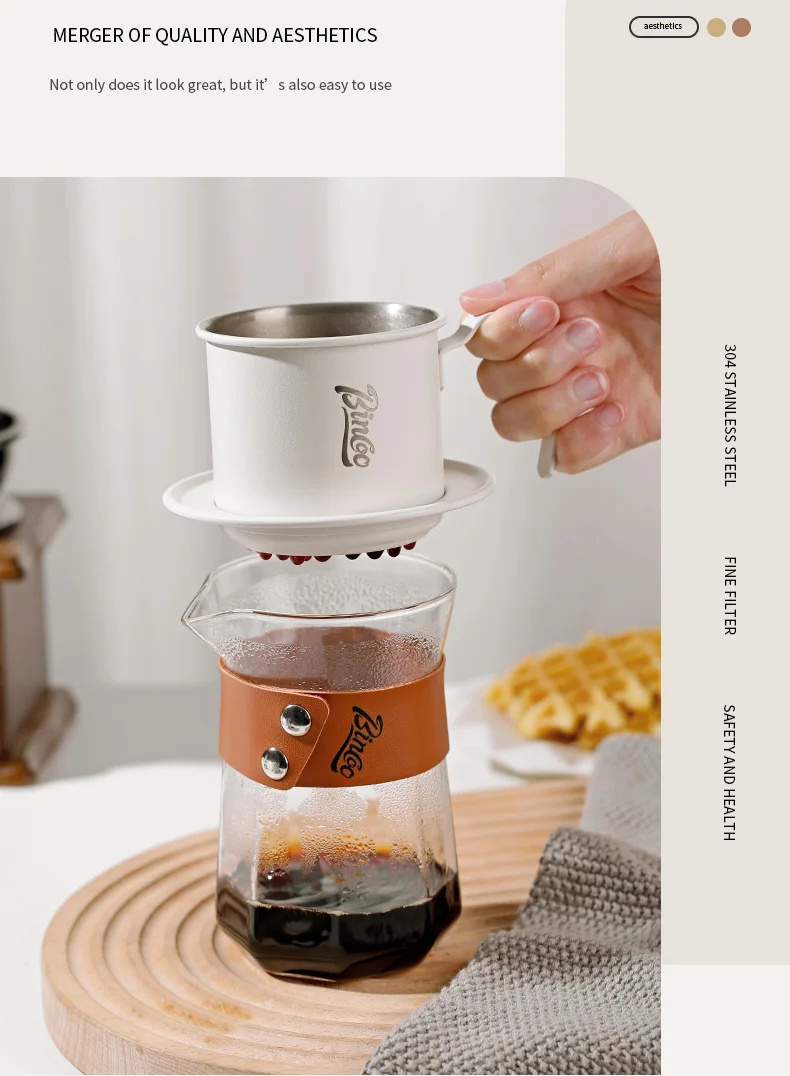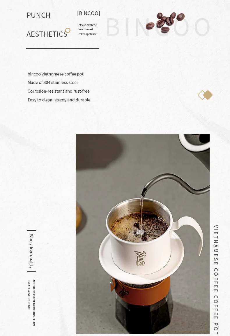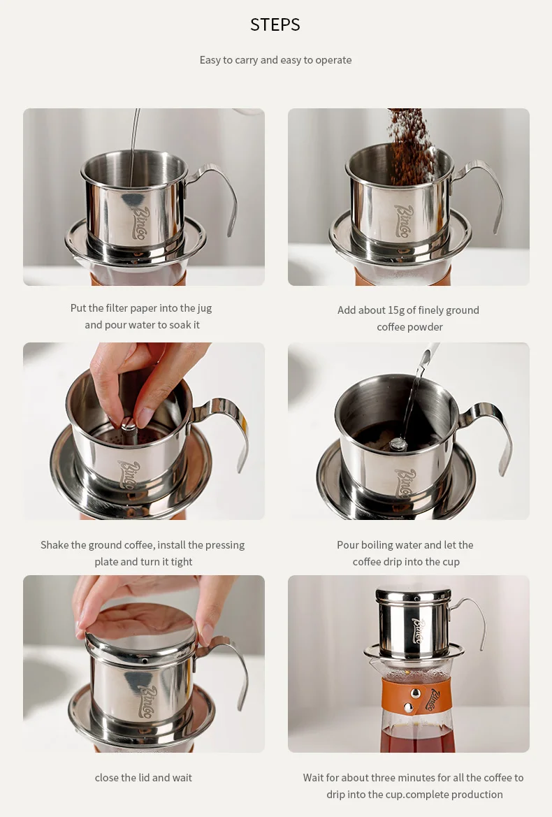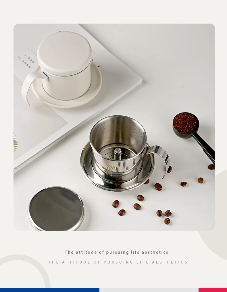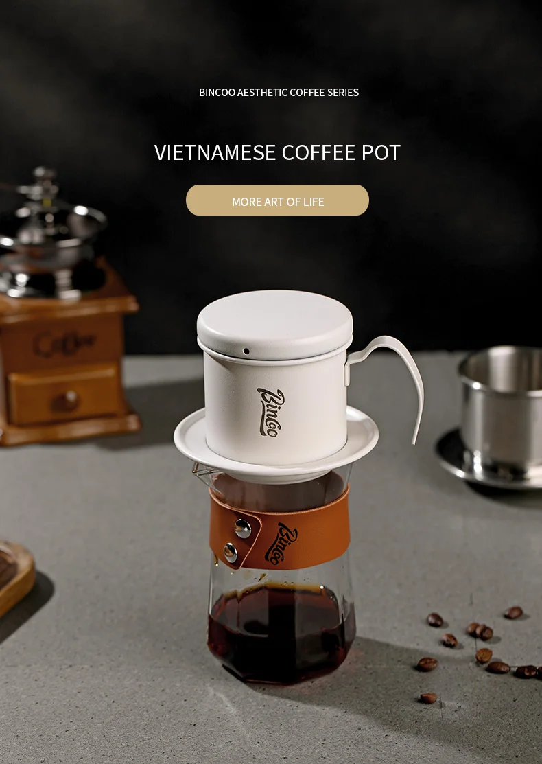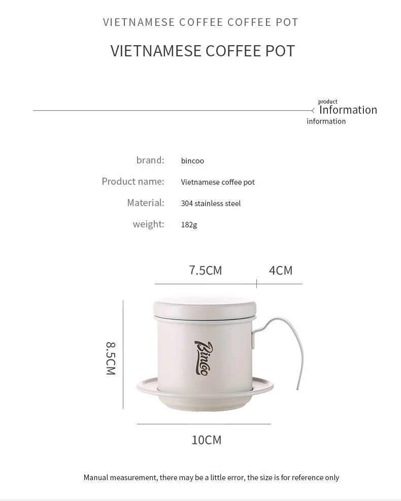 Bincoo Vietnamese Coffee Drip Filter Small French Press pot Portable Cup Stainless Steel Vietnamese Coffee Maker for Camping