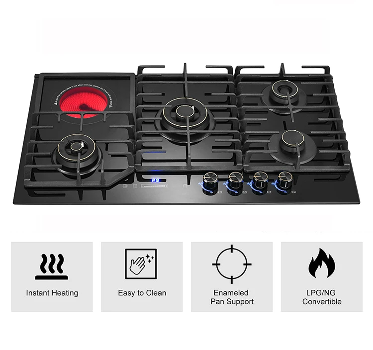 Built-in Tabletop Gas Cooktop, 1 Electric Oven with 4 Burners, Multi-head Home Gas Cooktop, Home Kitchen