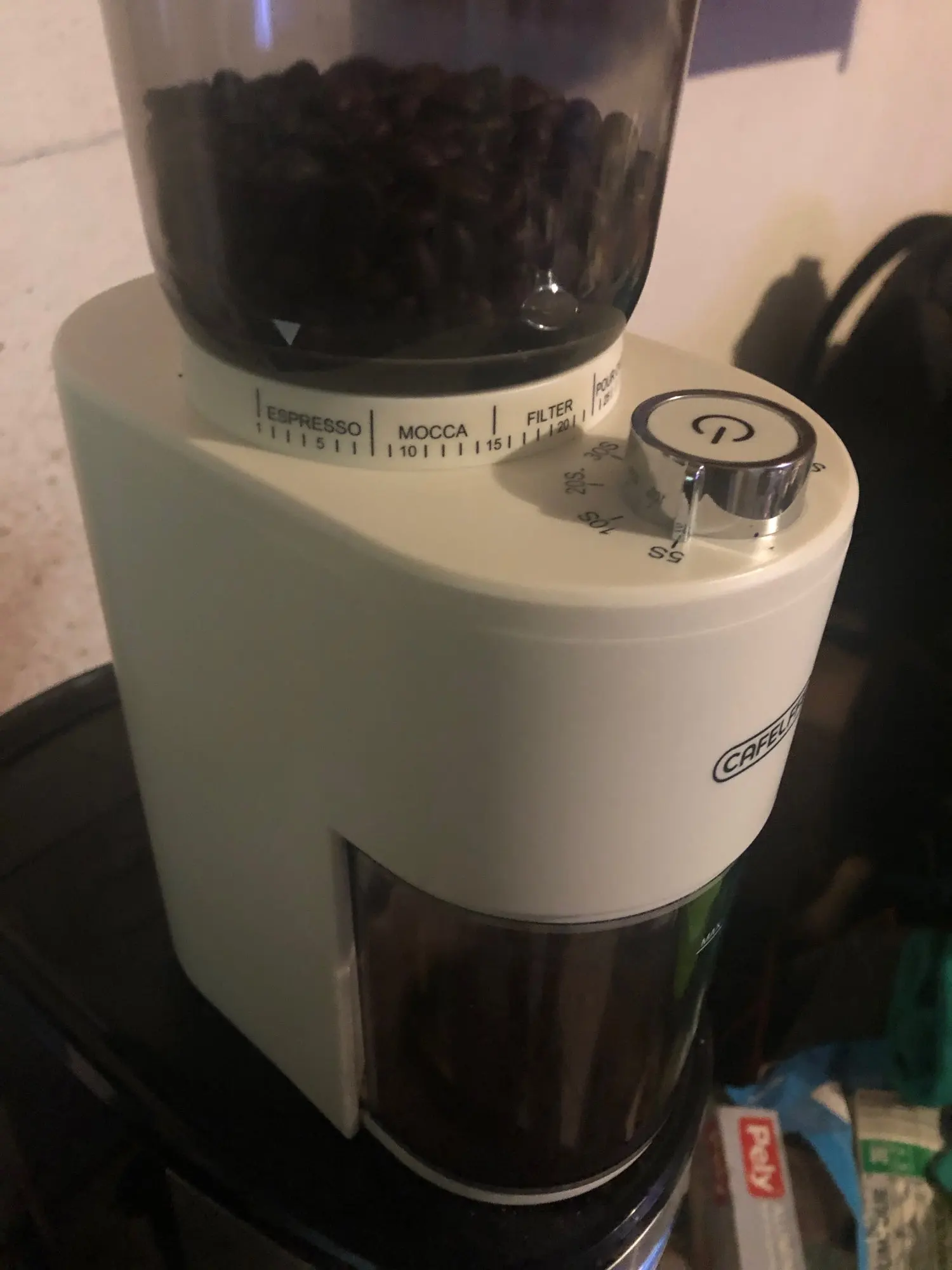 This coffee grinder has more than deserved the five stars. It has a conical grinder, which I usually only know from professional coffee grinders in ice cream parlors. And now that I have found the right degree of grinding for my type of coffee, I create a crema on a large cup that remains until the coffee is cold again. And the powder size of the individual grains is absolutely uniform. If I had to complain about something, I could only cite the time selection, which can only be set in 5 seconds. But this is not really bad, since the grinding process can be ended at any time by pressing the start button again. And you can accept that for this low price. (For exactly one cup of coffee in my machine, I have to run the grinder for 7-8 seconds. I then let it grind for 2-3 seconds and then run the 5 second setting again. Each Cup Freshly ground!)