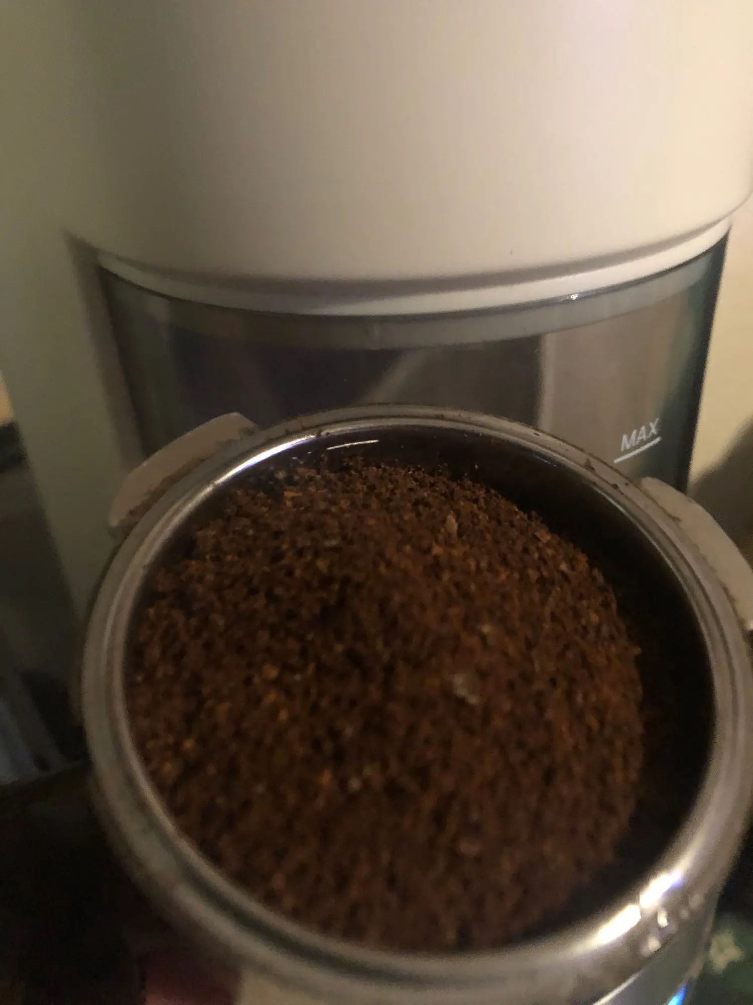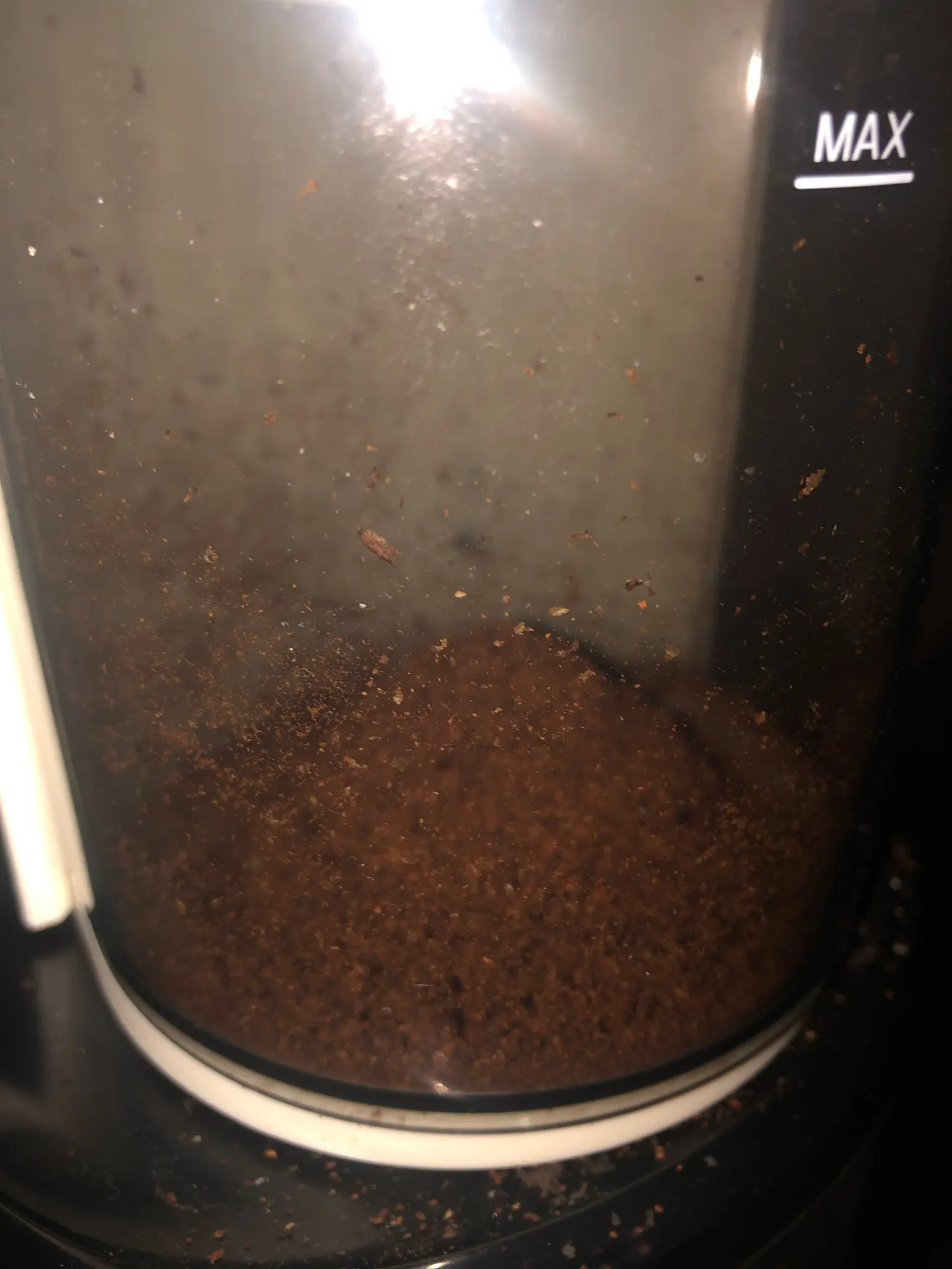 After the first few days of use, everything was fine. I only use it to grind for French press and Italian coffee maker (moka). In the photo, you can see the grinding levels. The finest one, I would say, is on the limit for espresso, in general they are coarse grinds. The indication for the French press seems too thick to me. But for me, the other less thick levels are sufficient. It stays true brown without going to the warehouse. With a funnel it would be better solved.