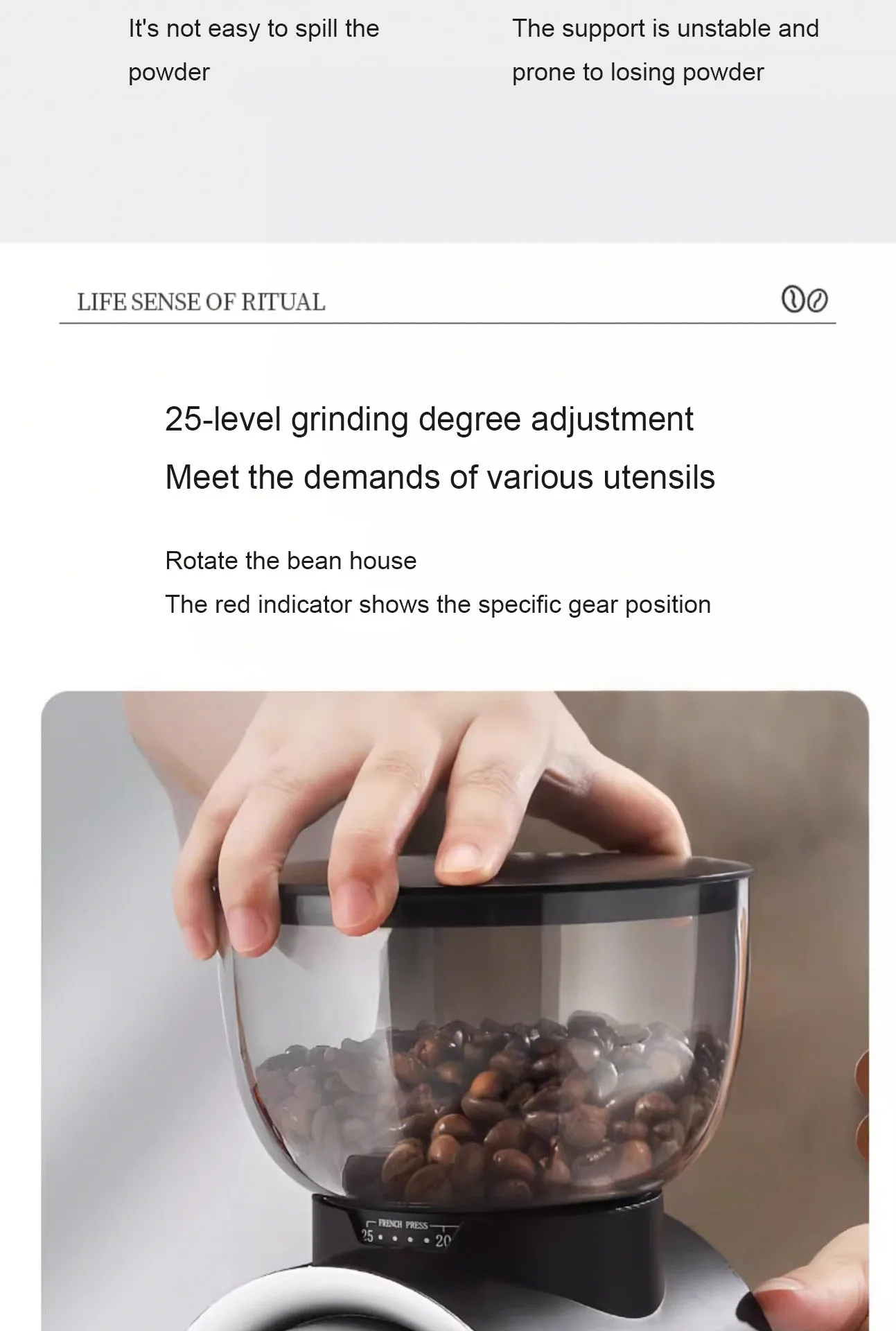 Petrus Coffee Grinder With Portafilter Hoder With 24 Precise Grind Settings Espresso Drip Percolator French Press(220V)