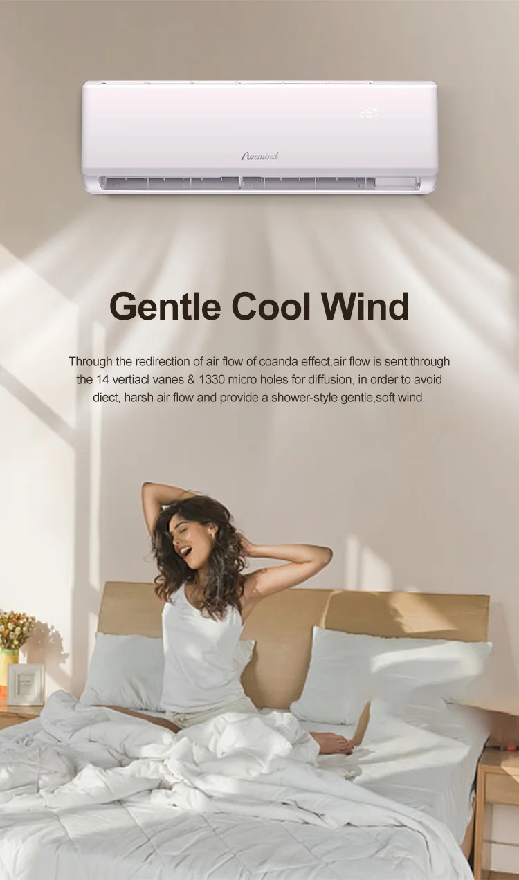 Puremind 9000Btu 12000Btu Wall Mount Air Conditioner On/Off Cooling Only Home Cooling System Split AC Units R410a Self-cleaning 3