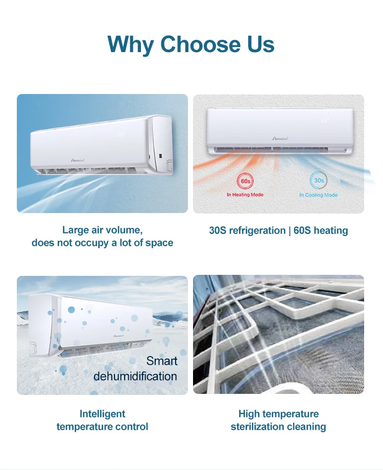 Quality Intelligent Home Use Smart On/Off Split Air Conditioners Wall-Mounted Air Conditioner Cooling and Heating AC Home Use Product Description