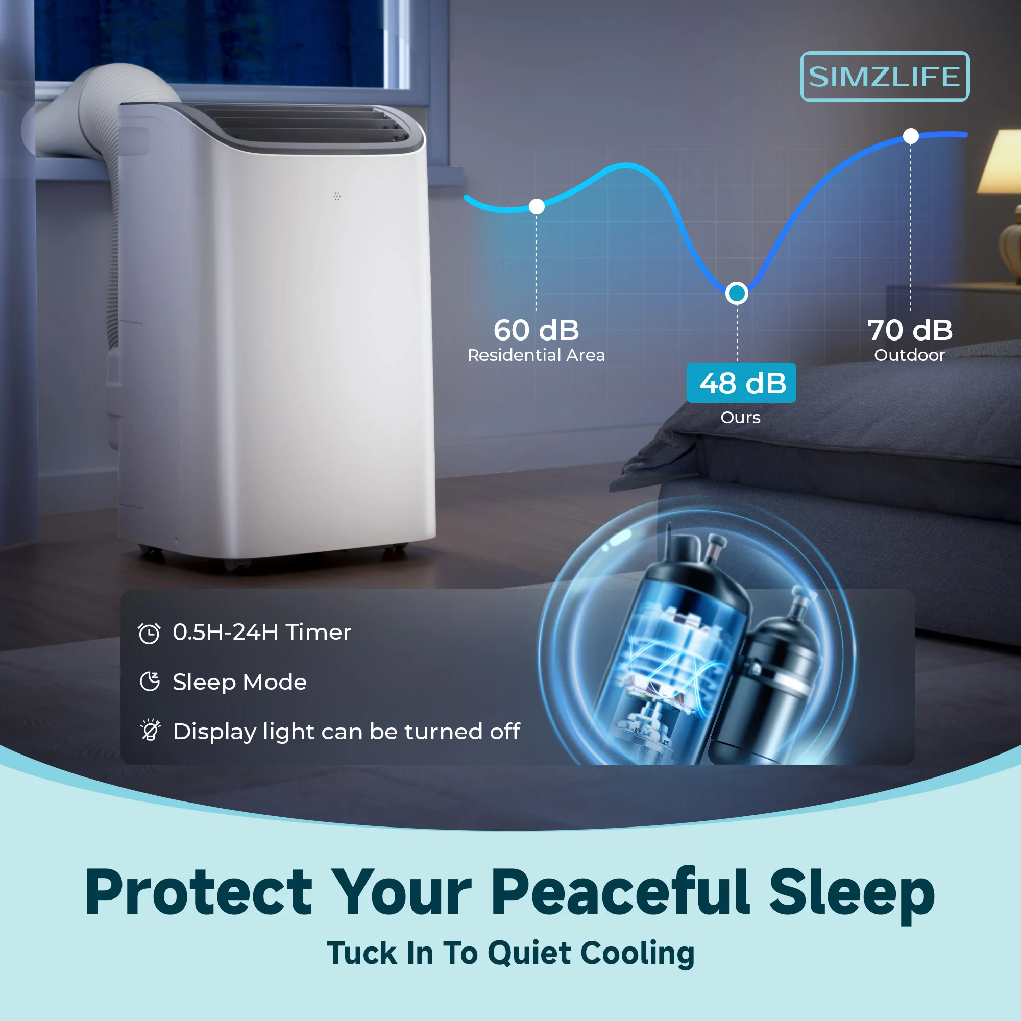 Simzlife Portable Air Conditioner 8000/14000 BTU Quiet Multifunctional Floor AC Unit With Dehumidifier Cool DRY HEAT Fan Mode