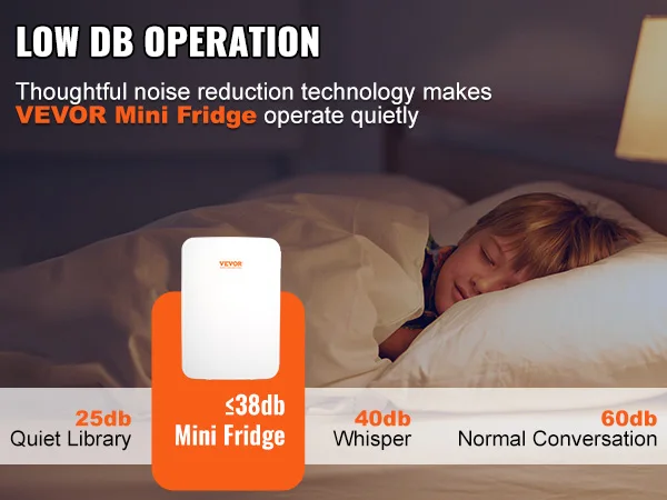 With thoughtful noise reduction technology, this small mini fridge operates at a sound level of below 38db, not only does it not disturb your work and life, even if it is placed in the bedroom, it will not disturb your rest.