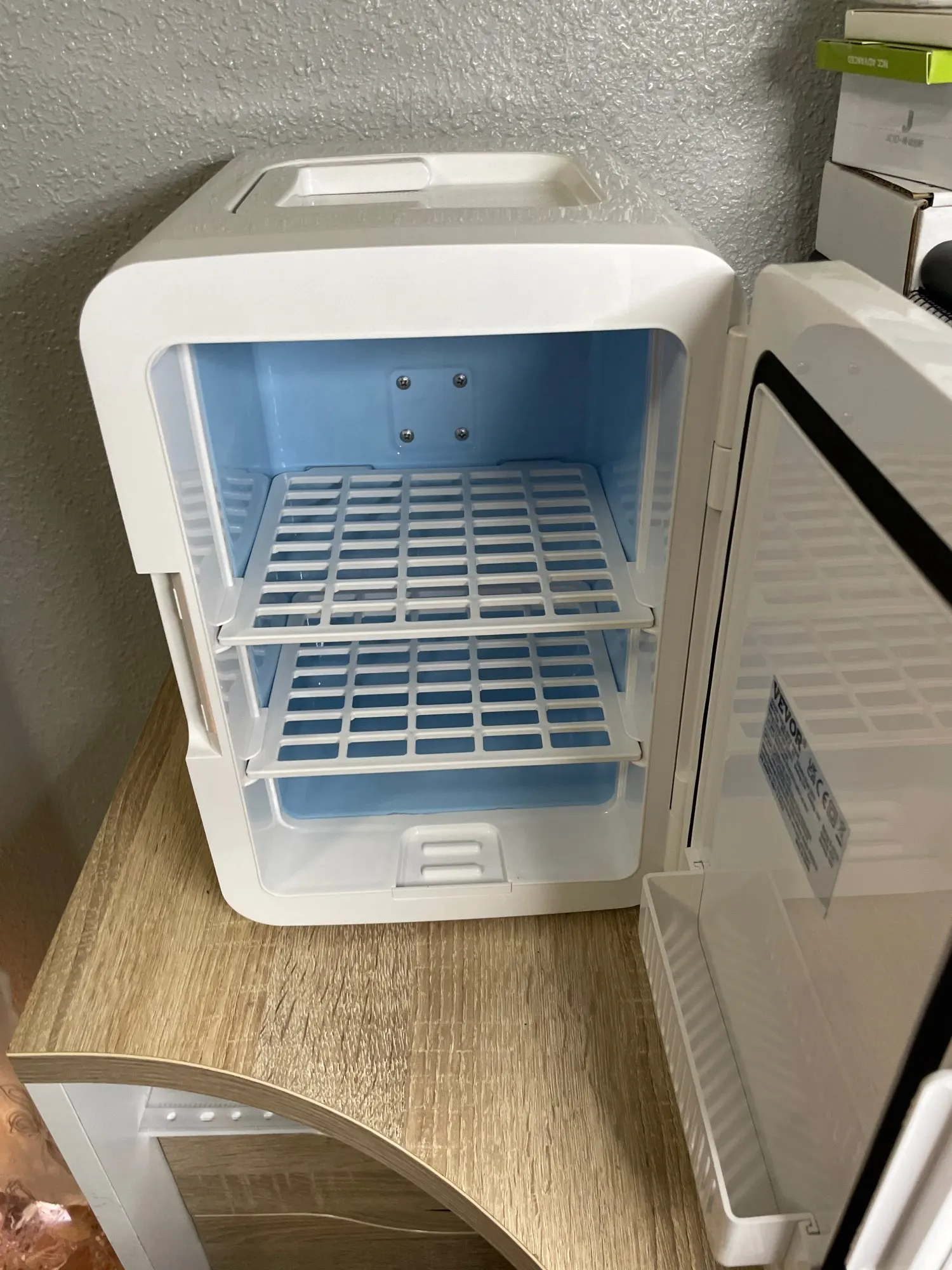 Compact but Spacious: Our mini-fridge features a small body, but it can hold up to twelve 330ml cans in its 10L capacity, weighing only 7.71lbs. Both sides are equipped with carrying handles to make it portable and easy to carry, ideal for storing food, drinks, breast milk, skincare products, medicine, and more.